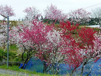 ![]() 石峠レイクランドから西へ向かう道路沿いは桜が満開です。 ![]() しばらくすると「林業技術センター」への標識が見えてきます。 ![]() こちらの道も道路沿いに桜がいっぱい。 ![]() 林業技術センターの敷地内には、約110種類、約300本の桜が植栽されています。 ![]() 桜1本1本に名札がついていて、いろいろな桜を見ることができます。 ![]() そのまま道なりに進んで行くと、森の科学館の建物が見えてきます。 ![]() この周辺も桜がいっぱいでとても綺麗です。 ![]() 鳥のさえずりだけが聞こえてくる中で見る桜もいいですよ。 さて、森の科学館を過ぎた後、国道388号を右折して327号へ戻ろうとした時・・・ ![]() 母が突然「あれ!何」と指さしました。 田んぼの向こう側に鮮やかな白とピンクと赤の花が見えました。 ![]() 「桃??行ってみようか〜♪」と右折するところを左に曲がって、桃が見える方向へ行ってみました。 ![]() ちょっと不安を覚えながら・・・(;^_^A 細い道を入ってみると 鮮やかな桃の花が見えてきました。 ![]() ![]() ビニールハウスの脇に植えられた桃の花。 ![]() 観光として見せているわけじゃないようですが、ものすごく綺麗で、感動しました。 ![]() 道が細かったので近くまで行きませんでしたが、帰って地図で確認したら、道は狭いですが、車で上がっていけそうです。来年の楽しみがまたひとつ増えました。 |