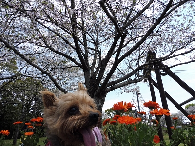 ラナも桜と一緒に。(^◇^)