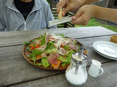 椎野で紫陽花を見た後は、OttO OttOへ。 ![]() 「こんな場所にまさか?」と思いそうな(笑)、田舎道に真っ赤な看板が目につきます。 ![]() 屋根の赤い看板。玄関前のイタリア国旗。 懐かしい田舎のばあちゃんちを思い出す古民家をそのまま使ったナポリピッツァのお店です。 ![]() ふふふ。(^^♪ 表からは見えないんですが、こちら、裏庭にテラスがあるんです。 ![]() テラス席はペット連れOKです。(^^)v ![]() 屋根付きなので、日差しを遮ってくれますから、うれしい〜♪ ![]() ピッツアのメニューです。どれもおいしそうなので迷いますね。 ![]() ![]() ビールの好きな方はテラスでピッツァを食べながら一杯っていうのは最高の贅沢かも。 ![]() 後、デザートのジェラートのメニューです。 ![]() まずは、宮崎県産有機イタリア野菜たっぷり、イタリア産生ハムのステッラをいただきました。野菜は宮崎市でイタリア野菜を作っているところから送ってもらうそうです。 まさしく、宮崎生まれのピッツァ。(^^)/ ![]() パルミジャーノレッジャーノチーズは目の前で削ってくれます。 このチーズがめちゃおいしくって♪ ![]() まさしくピッツァという名のサラダって感じですね。(^^)v ![]() 飲み物は珈琲をもらいました。 ![]() 2枚目はマルゲリータ。オリーブオイルの香りが最高です。 ![]() ![]() デザートに・・・母はフォカッチャ。 好きな2種類のジェラートを選ぶことができます。 ミルクとクリームチーズ、抹茶やピスタチオ、バナナシナモンなどから、ミルクとチーズを選びました。 ![]() 私はアフォガート。 ![]() エスプレッソとジェラートがいい感じで。(^◇^) 本格的なピッツァが食べられて、大満足でした。 ![]() 帰りは北方町経由でよっちみろ屋に寄りました。 ![]() 4Lの桃は2個で700円。10日頃が一番大きいのが出るので、来週もまた来ようと思ってます。(^^)v |