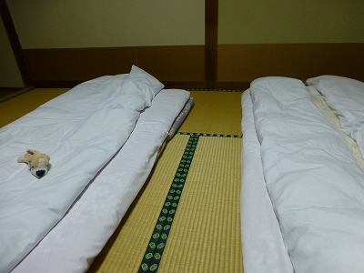 食事は別部屋なので、食事の間にお布団を敷いてくれてますので・・・ ![]() 食事が終わって部屋に戻ると、お布団がこの通り。(^_^)v ![]() 夕食後、涼しくなったところでラナを連れて、宿の回りを散歩しました。 ちくわ屋さんの看板が見えますが、日奈久温泉はちくわ屋さんが多いようで、宿の近くに5,6件ありました。 ![]() 散歩から戻って来た頃にはあたりも暗くなり、宿の玄関も灯りが灯ると、昼間の雰囲気とはちょっと変わっていい感じです。 ![]() 夏休み時期は暑いので、この時期のおでかけはずっと避けていました。 猛暑ということもあり、ラナが暑さバテしないか心配しましたが、暑さ対策に気を付けていたおかげか? 思った以上にラナが元気で楽しそうだったので、助かりました。 ![]() 寝る前、バッグを玄関のドアの前に置きました。 トイレがこの左側なんですが、トイレを出た板間が三角に切られていて、夜、母が足を踏み外さない為の対策です。(;^_^A 高齢者連れのお泊りはこういう部分の対策が必須です。 転ばぬ先の杖って大事ですよ。 ![]() 翌朝もいい天気。ラナを連れて朝のお散歩です。 ![]() 朝陽がまぶしい♪ ![]() こちらが「ばんぺい湯」こと日奈久温泉センター。 1階は公衆浴場で、2階が露天風呂と大浴場がある「ばんぺい湯」になってるそうです。 ![]() 朝の散歩から戻ったラナは自分のベッドに入って一休み。 ![]() 「朝から歩いて疲れたニャ。」 ![]() 朝ごはんは夕食と同じ「うんぜんの間」でいただきます。 ![]() アツアツの目玉焼きが完成〜♪ ![]() 個室は、ラナも自由にできるのがいいですね。 帰りに記念撮影した写真と日奈久温泉のニッケ玉を一袋、そして凍らせた還元水素水と朝入れた還元水素水の2本をお土産にいただきました。 ![]() 写真もうれしかったですが、何より一番助かったのは凍らせたお水。 部屋に冷蔵庫がないのは残念でしたが、その代わり、こういう心遣いをしてもらえることは、とってもうれしいかったです。 建物は古いですが、温泉もいいですし、何よりおかみさんやご主人、息子さん(だと思う(;^_^A)、仲居さんと宿のみなさんが本当にみなさん、笑顔で親切。 確かに設備がいいことも大切ですが、やっぱり人柄って大事だと思います。 |