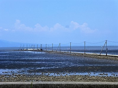 2日目は御船にあるBakersで恐竜バーガーを買って、海を見ながら食べる予定で、予約も入れていたのですが・・・ ![]() 当日の朝、お店から「機械の故障によりパンが焼けず、本日営業する事が出来なくなりました。」と電話が入って断念。又、次の機会に持ち越しです。 ![]() ・・・ということで、急遽、予定変更で宇城市の「コスタ・デル・ソル」でパンを買いました。 ![]() お店の前にはテラステーブルがいっぱいあり、珈琲もサービスもありますが・・・ さすがにこの夏の炎天下では、利用するのは無理ですね。(;^_^A ![]() ケバブサンド、塩パンサンド、くるみサラダ、塩めんたいを購入したら、海に向かってLet's GO! ![]() 向かった先は長部田海床路。 ずいぶん昔になりますが、焼酎のCMのロケで使われた場所です。 ![]() ちょうど干満の時刻。 ![]() 電柱が普通に陸地に建ってるように見えますが、数時間後、満潮になれば、海の中に電柱が立ち並ぶ光景になります。 ![]() ここは東屋があり、海風も通るので真夏の炎天下でも、めちゃくちゃ涼しいんです。 ![]() 海の眺めながら、パンランチです。(^^♪ ![]() 塩めんたい。明太子が中に入ってるのかな?と思いましたが、ちょっとこれは期待外れだったかな。('◇')ゞ ![]() ケバブサンド ![]() 野菜がいっぱい。チキンが思ってたよりやわらかで、ランチにはちょうどいいかも。 ![]() くるみサラダ ![]() くるみパンの中にシャキシャキレタス、トマトがサンド。 くるみパンがおいしかったです。・・・が ![]() 今回、一番おいしかったのはこの塩パンサンド。 見た目、シンプルで普通のハムサンドですが、塩パンがめちゃウマ!! もっと買えばよかったと後悔しました。(笑) ![]() パンを食べながら涼んだ後は、もう少し先にある「網田海岸公園」へ。 ![]() 洗濯板状となる岩盤と遠浅の海浜にできる砂紋が見られる海岸です。 ![]() 少し細い道になりますが、57号線から海沿いに入った御輿来海岸を高台から眺めることができる展望台もなかなかいいですよ。 |