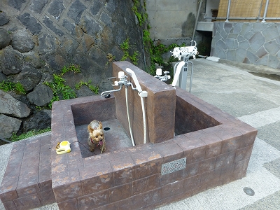 お風呂は・・・ ![]() ![]() 1階に貸切家族風呂 ![]() 地下1階に犬用湯船付の貸切家族風呂。 ![]() 結構、長い階段を下ります。 ![]() こちらが地下1階の家族風呂。 ![]() そして、これが犬用湯船だそうです。(^-^; ![]() 男湯、女湯以外は、入浴する時に、部屋の鍵と一緒にもらった「入浴中」のプレートをかけて入ります。 ![]() 5階に男湯、 ![]() 女湯。 ![]() 夜8時頃に行ったのですが、私一人の貸切。 浴場は古いですが、貸切で入れたお風呂は気持ちよかったです。 ![]() 最後に姫湯という名の貸切展望露天風呂。 ![]() 昼間はこんな感じで・・・ ![]() 夜はこんな感じです。 ![]() ![]() 我が家は一番階段が楽な、1階の家族風呂に入りました。 温泉は無色透明ですが、温泉特有の硫黄の匂いが強い温泉です。 さらりとしたお湯で、温泉はとても気持ちよかったです。 ![]() 温泉は数多く、貸切が入れる率が高く、温泉を楽しみやすいのはとてもよかったのですが、階段が急なこと、階段が多いことのが痛いところですね。 ![]() 日が暮れて、外が歩けるようになってから、ラナと一緒に河川敷を歩きました。 ![]() ![]() わんこの湯というのもありました。 ![]() 後ろの方に犬の形をした募金箱みたいなものがあったので、多分、そこに料金を入れるのでしょうが、いくらなのかはわかりません。募金すれば使っていいのか? 使用するには許可がいるのかもわかりません。 |
