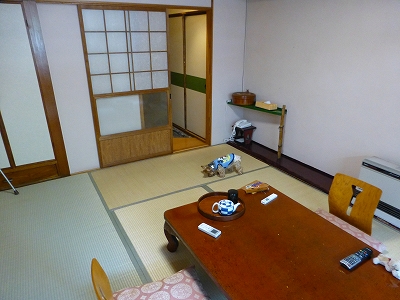 ベリージュファームからこの日の宿、天ケ瀬の本陣を目指します。 宿のすぐ近くにある「慈恩の滝」に先月、道の駅がオープンしたので、休憩がてら寄ろうかな〜と思いましたが、車が多そうだったのでパス。 夏の滝観光ってホント、人気があるんですね。 ![]() 宿のチェックインは15時30分。時刻はまだ15時過ぎでしたが、そのまま宿に向かいました。 事前に宿には「気温が高くなりそうなので、15時くらいに着いたら、ロビーとかで待たせてもらってもいいか?」と電話したところ、15時くらいなら部屋の準備もできているので、そのまま部屋に入ってもらってもいいという返事をもらっていましたから。 ![]() ![]() こちらが2泊目にお世話になった本陣。 ![]() 「ワンちゃんと一緒に泊まれるお宿」と銘打ってるようなので、ペット連れで安心して泊まれますね。 ![]() 宿は天ヶ瀬温泉にあります。 ![]() 昔ながらの温泉旅館という風情は、時代を感じることができて悪くないですね。 ![]() 天ヶ瀬って寅さんの舞台にもなったそうですね。(知らなかった(^-^;) 館内には寅さん関係の絵がいっぱい飾ってました。 ![]() 車は河川敷が駐車スペースになっていますが・・・ ![]() 大雨とか台風の時って水没しないんでしょうかね?(^_^;) ![]() 後で河川敷を歩いた時に橋の柱に増水の時の目安がついてましたが、黄色の警報レベルで駐車場は水没しているような気がします。増水しそうな時は事前に車は上にあげるんでしょうが、夜中、急に大雨が降って増水することってないのかな?? ![]() 昔ながらの温泉旅館で風情があるのは良いのですが 階段が宿に入るのにも階段、 宿に入ってからも階段は、高齢者泣かせです。 (スリッパは脱げて危ないので、あえて履かせていません。) ![]() しかも、部屋以外はエアコンがないので、外と同じくらい暑い。 「早く着いたらロビーで待たせてもらえますか?」と聞いた私ですが、ロビーで待つなら車の中にいた方が涼しいくらい暑かったです。 15時でもお部屋に入れてもらえたのでよかったですが・・・ ![]() 部屋は3階。 窓際に板間がある8畳の和室です。 ![]() 室内はペット自由です。(ケージインの必要はありません。) ![]() 窓際の板間に冷蔵庫。 ![]() 冷蔵庫の向かえ側に時代を感じる洗面台があります。(笑) ![]() 窓からの景色。旅行に来た〜って感じがしていいです。(^^)/ トイレは部屋を入ってすぐ右。 後で水洗トイレを増築した為、トイレの前に三角の板間を作ってありました。これは、先月行った不知火ホテルと一緒です。 不知火ホテルよりは板間部分が少し広かったので、今回は段差対策でバッグを玄関に置くことはせずに済みました・・・が、不知火ホテルとは違い、ドアが打ち開きだったので、部屋から出るのにドアが開けにくかったです。 ![]() 不知火ホテルは行き止まりが部屋だったので、外開きにできましたが、こちらは部屋が廊下並びでしたから、ドアは内開きにするしかないので、仕方ありませんが・・・ ![]() お茶はパックじゃなかったですが・・・お茶の葉だけじゃないお茶でした。(^-^; ![]() 部屋には特にわんこグッズはありませんが、宿の玄関にウンチ袋と足ふき用に濡れティッシュが置いてあります。 ![]() 宿の玄関は門限があり、夜は11時から翌朝6時までは外に出ることはできません。 |