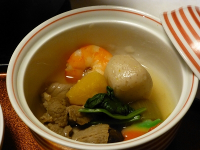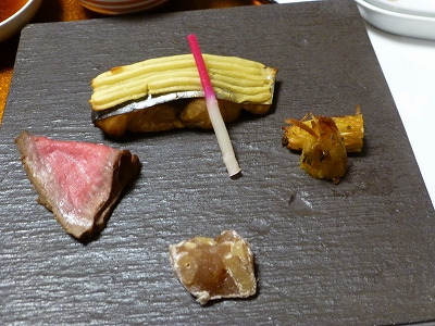![]() この日の夕食メニューです。 ![]() お造りはてっさ ![]() 前菜 ![]() 長崎県産牛ステーキ メニューに「松茸 栗」って書いてありますが、確かに松茸さんが真ん中に鎮座。(笑) でも、これ「松茸 栗」と書くより「南瓜、アスパラ」が正解のような。((´∀`))ケラケラ ![]() 島原名物具雑煮 ![]() 飲み物はいつもの通り、梅酒をいただきました。 ![]() 秋のキノコご飯はお釜に火を入れて、火が消えたら出来上がり。 ![]() 蓋物 私は煮込んだ肉はダメなので・・・イノシシさんは母に食べてもらいました。(;^_^A ![]() 鰆丹波焼、ローストビーフ ![]() 海老黄金焼としまばらサラダ ![]() 赤だし ![]() デザートは寒ざらしを使った抹茶白玉小豆 ![]() 真ん中に、くこの実。 ![]() 食事が始まった頃は起きていたラナさんですが・・・ ![]() ペット用のプリンが出た頃は爆睡して・・・ 結局、残してしまいました。あ〜ら、もったいない。(笑) ![]() 食事が終わった後、「ラナちゃんにプレゼントです。」と風船を置いていかれました。 う〜ん・・・(;^_^A 子供だったらわかるけど、犬になぜ、風船?(笑) ラナは風船って怖がるので、風船さんには申し訳ないけど、ラナが見えないところに移動してもらいました。(笑) |