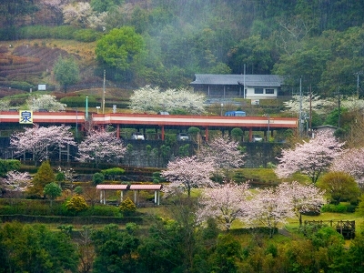 ![]() 今日の延岡は朝から雨。 ![]() 市内の桜はまだ5〜6分咲きなので、まだ早いだろうな〜と思いつつ、県北の桜を見に出かけてきました。 東郷町をぐるっと走った後・・・ ![]() 石峠レイクランドへ。 ![]() ここは屋根付きの駐車場があるので、雨が降っても、ゆっくり景色を楽しめます。 ![]() ここの桜はほぼ満開に近いくらい。 ![]() ![]() 今日のお昼はコンビニで買ったおにぎりです。(^◇^) 意外においしい♪ ![]() 石峠レイクランドを川向こうから見るとこんな感じです。霧もまたヨシってことで。('◇')ゞ ![]() 白と赤のラインの部分が私たちが車を停めた駐車場になります。 ![]() この後は西郷地区をぐるり。 ![]() こちらの桜も満開です。 ![]() そして、桜にも負けない美しさがのが桃。 ![]() ピンクと白がホントに綺麗。 ![]() 道路沿いに咲いていてます。 ![]() 桃は桜より花が長く楽しめるのがいいですね。 ![]() ![]() その後は北方方面に走りました。 ![]() ![]() ![]() 菜の花で訪れた上崎。 ![]() 予想通り、桜が綺麗に咲いてました。 ![]() ![]() 雨降りが残念でしたが、雨なりに車の中が桜を楽しめました。(^_^)v |