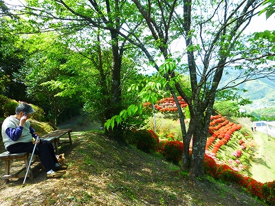 ![]() 22日土曜日、日之影町の天神山公園のツツジを見に行きました。 ![]() 母とラナ。おっちらおっちらとゆるやかな坂道を歩いていきます。 ![]() 見事の赤!!! まさにまっかっか。 ![]() こうしているとキャンさんがツツジの上に乗ってるみたい。(笑) ![]() 上の方まで登ってからの眺めです。 ![]() この眺めを見ると気持ちが穏やかになってきます。 ![]() 赤いツツジの次はピンクのツツジ。 ![]() ![]() 毎年のことですが、ピンクのツツジの方が赤より咲が遅いですね。 ![]() ピンクのツツジの先はまた赤のツツジが並びます。 ![]() 桜の木の下で一休み。新緑の桜の木もいいものです。 ![]() 一休みしたら、来た道を戻ります。 ![]() 赤と緑がまぶしいです。(^◇^) ![]() 今年もとっても綺麗なツツジを見に来れてよかったです。 ![]() 普段はあまり長く歩きたがらないラナですが、この日はよく歩きました。 土が気持ちよかったのかな。 ![]() そして、帰り道。北方よっちみろ屋でピザを買って食べました。 北方野菜ピザは1000円。カリカリのピザ生地の上にこれでもかってくらい季節の野菜がてんこ盛りで、とってもおいしかったです。 |