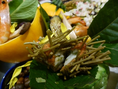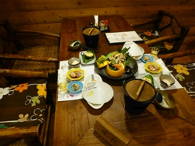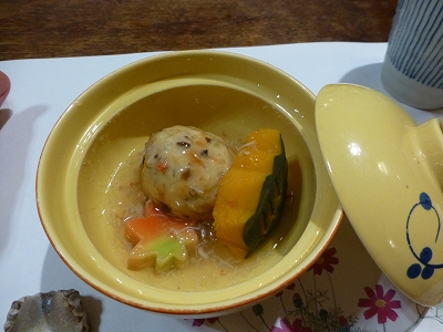![]() 食事は18時。 ![]() レストランでのお食事で、ペットは同伴不可なので・・・ ![]() ラナは「御パンツ」を履いて、ボンちゃんと一緒にお部屋でお留守番です。(^^)/ ![]() 部屋の名前のテーブルに座りますが・・・シェフが料理の説明に回るから それまで箸をつけないようにと言われました。 結構、待ちながい・・・(;^_^A ![]() 私的にはお品書きの方がいいな〜 口頭で言われてもすぐに忘れてしまうし ![]() 何より、回ってくるまで食べられないというのがなんとも痛い。 ![]() ・・・ということで、何がなんの料理かはよく覚えてないので わかる範囲だけ。 ![]() カンパチとバルサミコ酢 ![]() トマト鍋。 ![]() 鮎の塩焼き ![]() 椀物 ![]() ご飯はなんと!オムライス。写真じゃ大きさがわかりにくいかもしれませんが、2人分なのでかなりデカい。(笑) 宿泊先でオムライスを食べたのは初めてかも。 量も多いので、さすがにたべきれなかったです。 ![]() 最後はデザート。 ![]() 照明が入るまで、入口付近のお土産が置いているところに こんなものが置いてあったなんで全然気がついていませんでした。 照明が入ると、とっても綺麗。 ![]() 夕食を終えて部屋に戻る頃、あたりは暗くなりました。 陽が落ちるのが日に日に早くなってきますね。 |