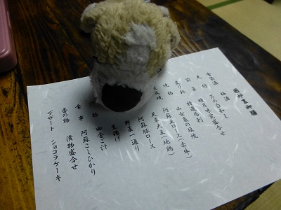 ![]() 部屋でゆっくり休んだら、ラナの夕食の時間。 小笠原に泊まると、自分のご飯が部屋に来るというのを覚えたのか、夕方くらいになると、しきりに玄関の近くに行ってそわそわするラナです。(笑) ![]() ラナのご飯が終わったら、私たちの夕食。 ![]() 今回も冬季限定の囲炉裏でお願いしました。 ![]() 一応、メニュー。(^-^; ![]() 今回の一杯目の梅酒は「赤兎馬」 ![]() 口当たりがよくて、好きな味です。 ![]() 山女魚さんも炭火で焼いて・・・ ![]() いっただきま〜す♪ ![]() ![]() 二杯目は「豊永蔵」 「ホウエイゾウ?トヨナガ?」と読み方もわからないまま注文。 「トヨナガクラ」っていうらしいです。 ![]() 最後はデザート。 ![]() 予想以上の雪に大はしゃぎして、夜も更けていきました。 ![]() 翌朝、部屋のまわりの雪はこんなに溶けました。 ![]() ![]() 前日は雪ばかりだったところも・・・ ![]() 翌朝は土が見えるくらい。なんだか、夢でも見ていた気分です。(笑) ![]() いつものように朝食・・・と言いたいところなんですが、珍しく、私が少し体調を崩しまして。(;^ω^) いえ、大したことはなかったんですが、食欲が出ず、初めて、朝食を残しました。あ〜あ、残念。まあ、こんな日もあります。(;^_^A 今回の小笠原は、ほぼ初めてと言っていい雪を楽しめて、母をとても喜ばせることができてよかったです。こんなチャンス、そうそうないですからね。 ![]() チェックアウトした後、道の駅 阿蘇へ。 くまもんはお正月飾りをつけてもらってました。 |