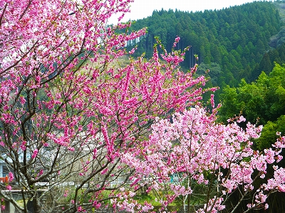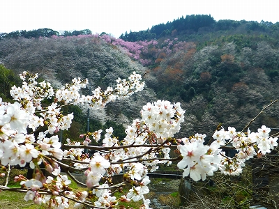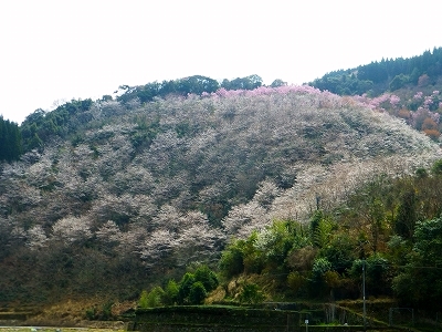 直見駅前の桜並木を見ながら、ひさしぶりに国道10号線を走りました。 そして、寄り道した先は本匠岩屋。 一面、桜を植えた山があるという話を聞いて訪れました。 横道に入って、しばらく車を走らせると・・・ 全面に何やら、白っぽい山が見えてきました。 ![]() 「あれかな? 確かに一面、桜みたい。」 ![]() 思ったより、桜の色が薄く感じましたが、確かに一山全部、桜。 そのまま、少し車を走らせると、横面も桜。 ![]() 植える桜の木を山頂付近の濃いピンク色の桜にした方がよかったかも。 少し離れた場所から見るので、色が濃くないと折角の桜の色がぼやけて見えます。 ![]() 紅葉だと色が濃いから少し遠めでも綺麗に見えるんですけどね。 そこがちょっとだけ残念な感じでした。 (;^_^A ![]() それから延岡への帰り道。川沿いに桜と桃が綺麗な場所を見つけました。 ![]() ![]() ![]() ラナもちょっと降りて歩きました。 風が吹くと、花びらがヒラヒラ舞って・・・綺麗でした。 |