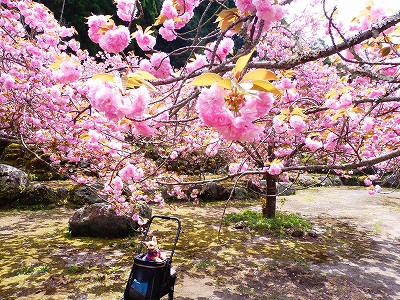 さて、高齢者と高齢犬連れのちびまる家はいつもは上に上がらず、下の方だけで桜を見ていましたが・・・ ![]() 母が上からの景色も見てみたいというので、今年はちびまるとラナで、動画と写真を撮りに上に上がりました。 ![]() 母も直に見れるといいのですが、母にはちょっと厳しい階段や坂道なので、桜を見ながら待ってもらいました。 ![]() 「ラナは一緒にあがったよ〜」 ![]() 「ボンちゃんも一緒だよ〜」 ![]() 上から眺めると、寺中に桜がいっぱいというのがよくわかります。 これだけの桜を維持してるってすごいですよね。 ![]() さあ、上からの景色を堪能したら、下に降りようか。 ![]() その後は、桜を見ながらエトワルで買ったパンを食べて・・・ ![]() ピンク一色の中を歩きました。 ![]() ![]() 今年はソメイヨシノの開花が1週間くらい早かったですが、ぼたん桜も同じく1週間くらい早めの開花となりました。 ![]() いつもの年だと15日くらいは、満開に入るか入らないかですが、今年は15日は葉桜。花の見頃の時期を予測するのって、本当に難しいですね。(;´・ω・) |