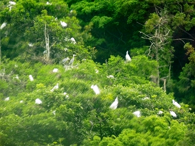 行く途中、三重町で木にたくさんとまっているシラサギさんたちを見ました。(^^)/ まるで白い花のよう。