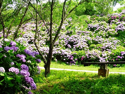 こちらの斜面の紫陽花は毎年6月の中旬過ぎが見頃です。