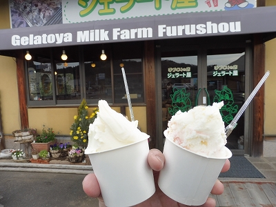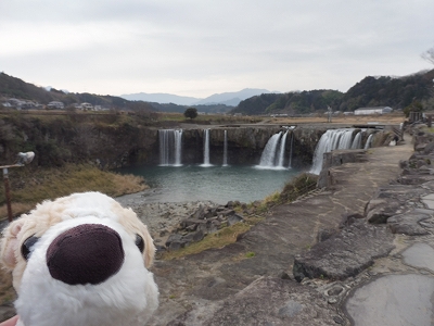 寒い季節なので、ランチを食べて宿に行くだけのシンプルなおでかけプランです。  まずはラナの散歩を兼ねて、ひさしぶりに原尻の滝へ。  夜はイルミネーションをされているようで、芝生のところに電飾がついてました。  原尻の滝に寄ったのはかなり、ひさしぶりです。  さて、ひと歩きした後(ひと歩きとも言えない距離ですが(笑))は・・・ 道の駅の横にあるジェラート屋さんへ。  こんなに並ぶと迷いますね〜(^-^;  悩んだ結果、焼き芋「甘太」とラズベリーピーチを選びました。 冬のジェラートも、乙なものです。(笑)
