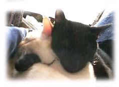 写真はイチロウとぐっすり眠っているところ。ジジは眠ると顔が真っ黒になるから何が何だかわからない!(爆)